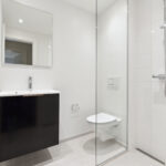 Bathroom optimization: The former compact toilet was replaced with a spacious bathroom featuring a separate shower, underfloor heating, improved ventilation, a lowered ceiling, and recessed lighting.