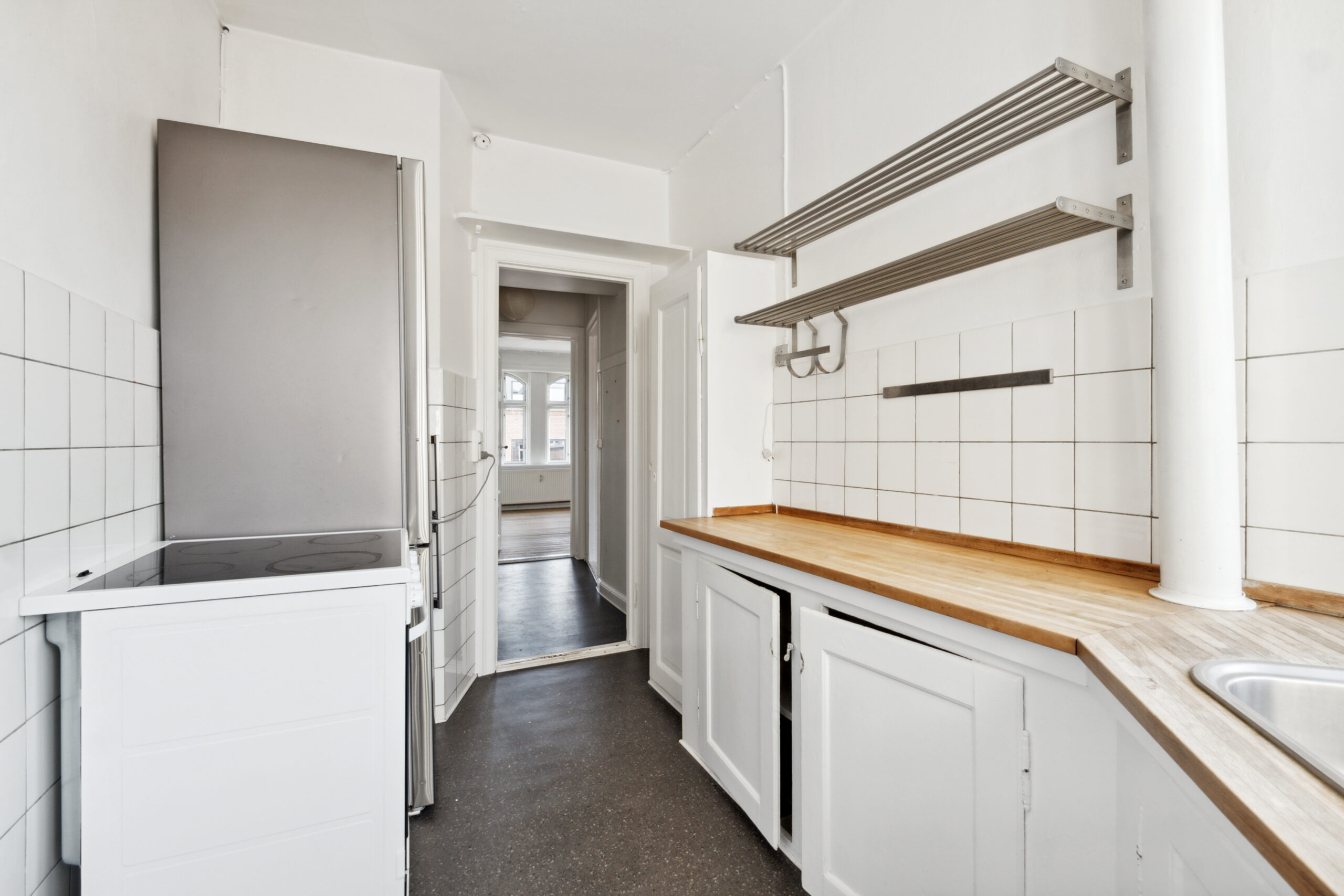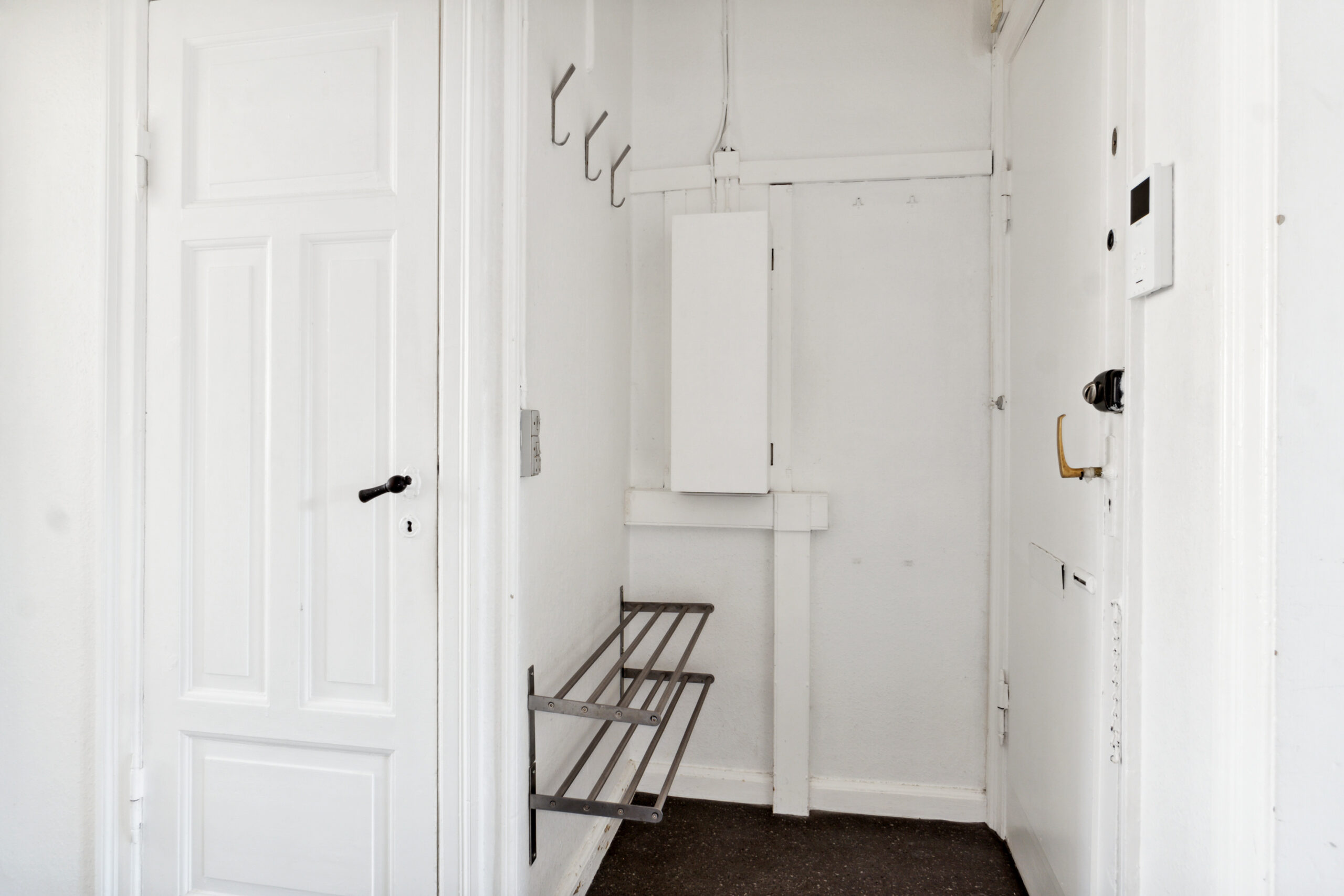 A special detail is the original stucco ceiling in the living room, which has been carefully preserved and restored to maintain the apartment’s historical charm.